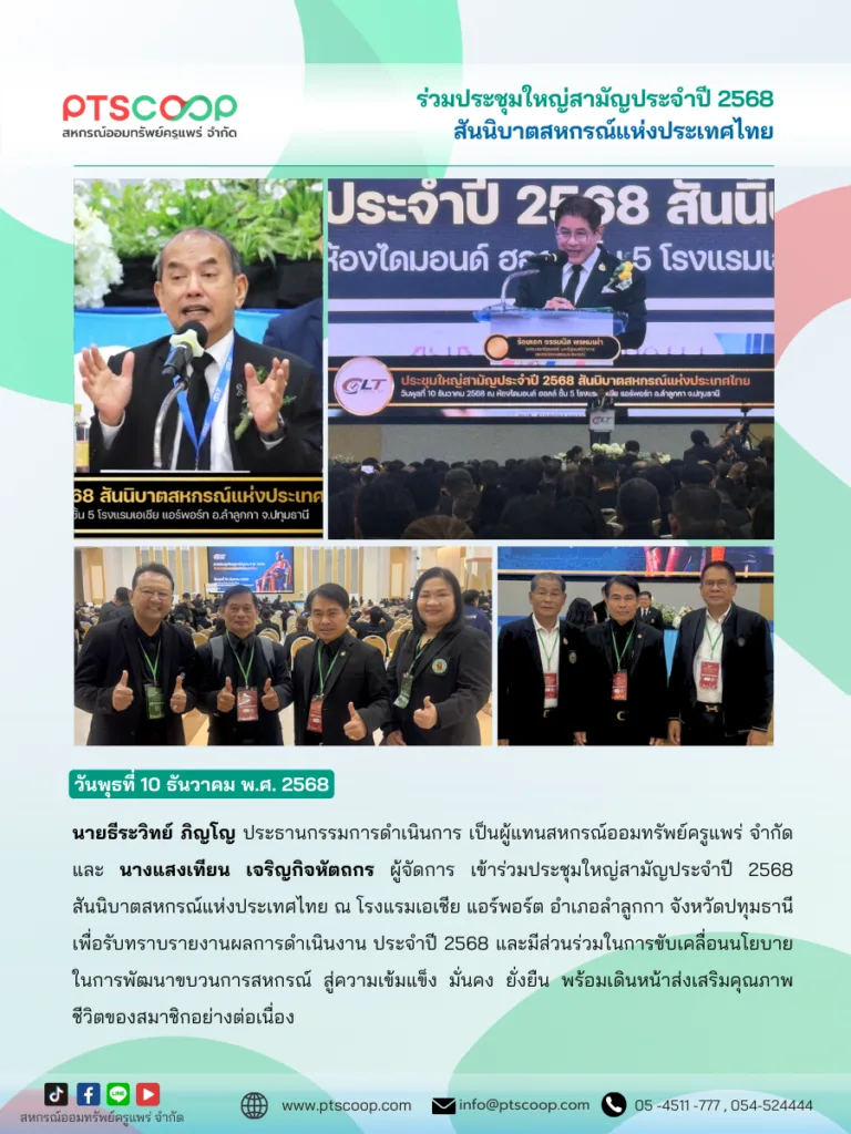 ข่าวกิจกรรม 🏛️🤝 เข้าร่วมประชุมใหญ่สามัญประจำปี 2568 สันนิบาตสหกรณ์แห่งประเทศไทย10 December 256810 December 2025