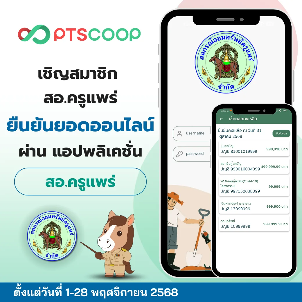 ด้วยสหกรณ์ออมทรัพย์ครูแพร่ จำกัด จะดำเนินการสอบทานยืนยันยอดลูกหนี้ เงินรับฝาก และทุนเรือนหุ้น ณ วันที่ 31 ตุลาคม 2568 เพื่อให้การดำเนินงานเป็นไปอย่างถูกต้องและโปร่งใส