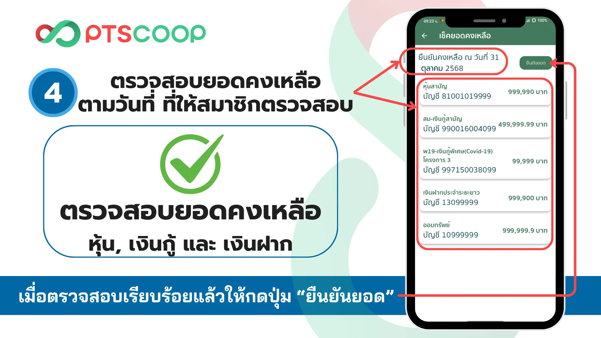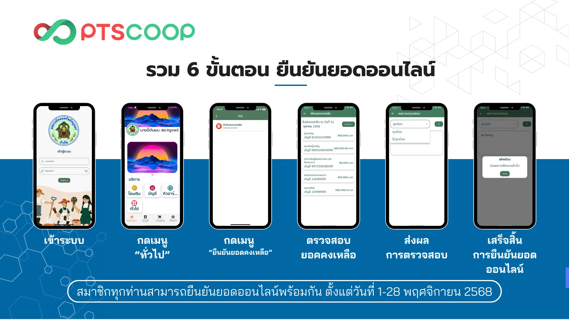 สหกรณ์จะเปิดให้สมาชิกทำการยืนยันยอดคงเหลือ ระหว่างวันที่ 1 พฤศจิกายน – 28 พฤศจิกายน 2568