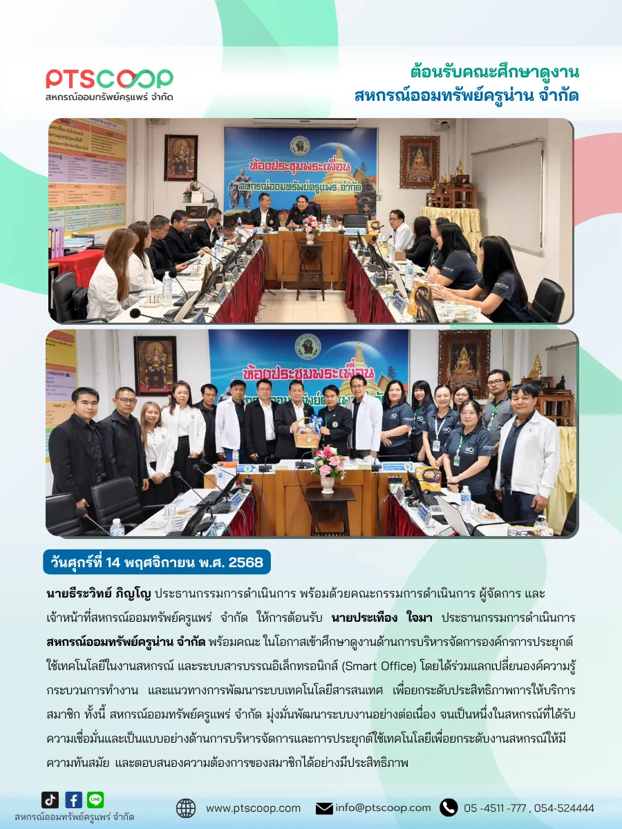 ✨🤝 ต้อนรับคณะศึกษาดูงานจากสหกรณ์ออมทรัพย์ครูน่าน จำกัด 🤝✨