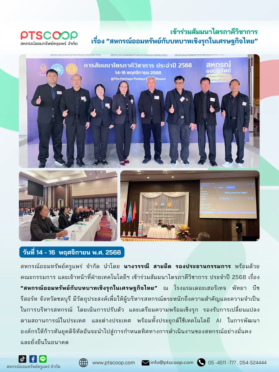รวมถึงเตรียมความพร้อมของผู้บริหารสหกรณ์ต่อการเปลี่ยนแปลงในยุคดิจิทัล พร้อมอัปเดตทิศทางสหกรณ์ในอนาคต เช่น การนำเทคโนโลยี AI 🤖✨ และระบบดิจิทัลต่าง ๆ มาประยุกต์ใช้ในการบริหารจัดการ เพื่อให้สหกรณ์มีความมั่นคงและยั่งยืน 🌱📊