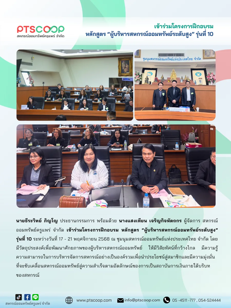 “ผู้บริหารสหกรณ์ออมทรัพย์ระดับสูง” รุ่นที่ 10