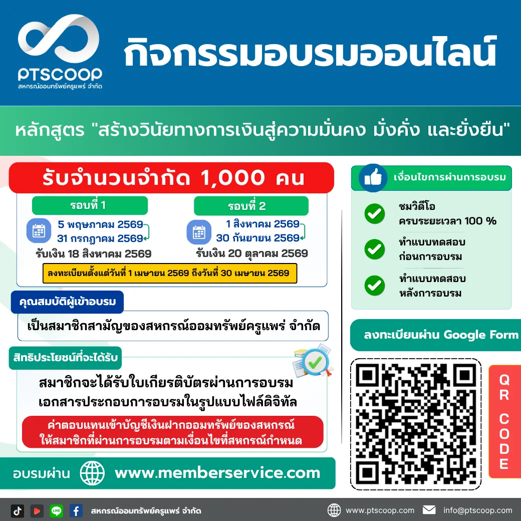 การเข้าร่วมกิจกรรมอบรมออนไลน์ หลักสูตร “สร้างวินัยทางการเงินสู่ความมั่นคง มั่งคั่ง และยั่งยืน”