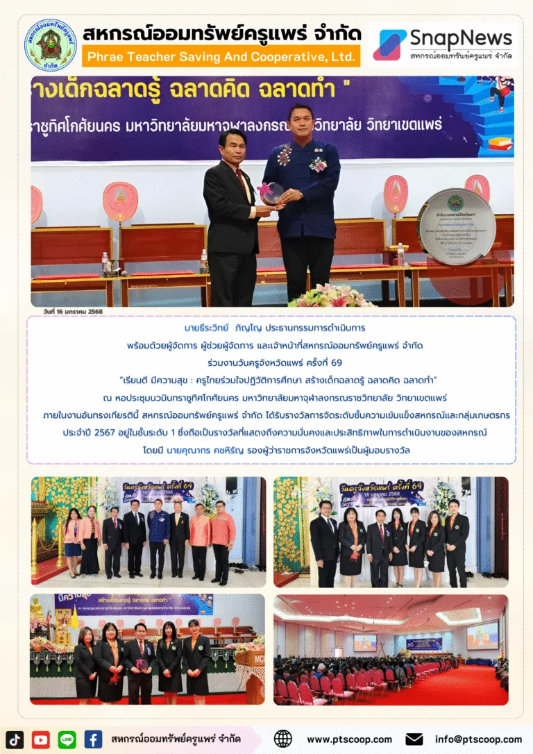 ข่าวกิจกรรม ให้การต้อนรับ ดร.ธำรงค์ น่วมศิริ ประธานกรรมการสหกรณ์ออมทรัพย์ครูอุตรดิตถ์ จำกัด20 January 256807 March 2025