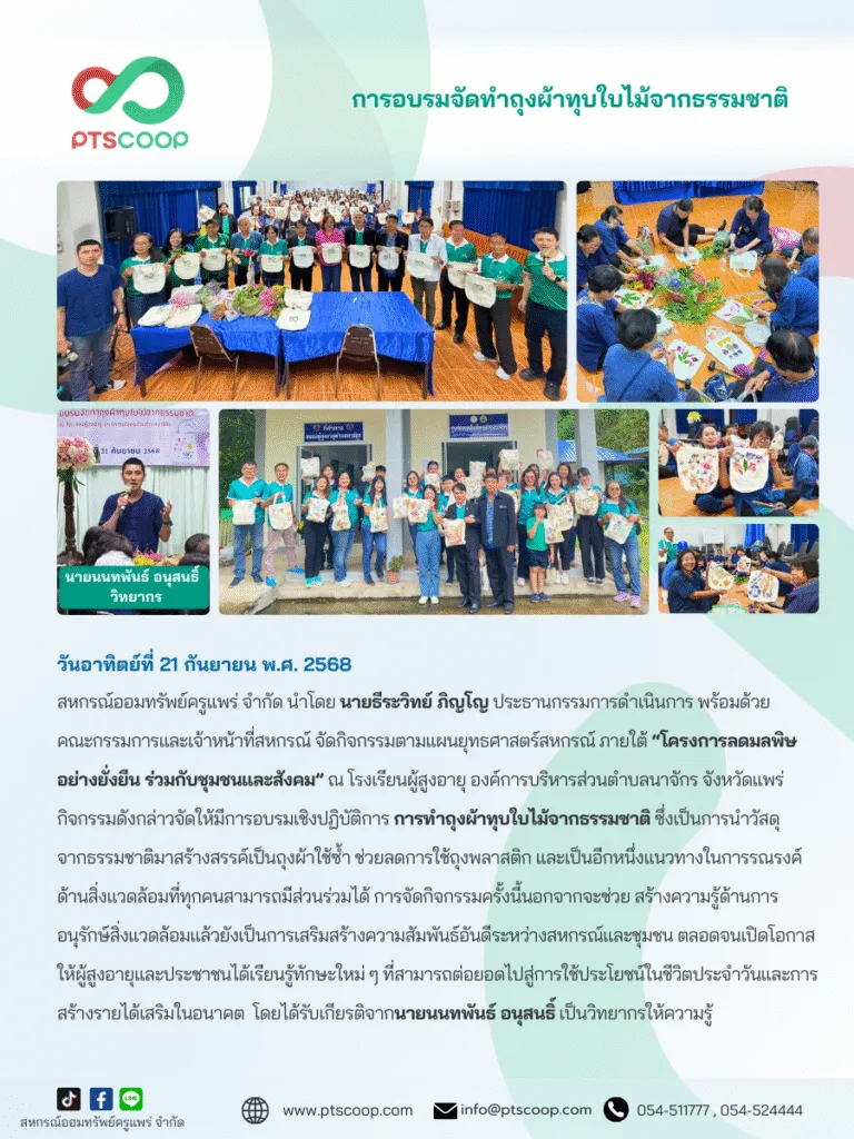 ข่าวกิจกรรม พบปะสมาชิก กลุ่มเครือข่ายแม่พุงและกลุ่มเครือข่ายเวียงด้งนคร13 September 256813 September 2025